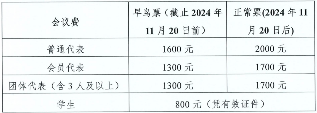 本次大会的报名现已启动,会议收费标准见下表(会议费包含参会费、会议资料、7-8日自助午餐费用),使用微信扫描下方二维码进行报名,报名截止日期2024年11月30日,交通、住宿自理。