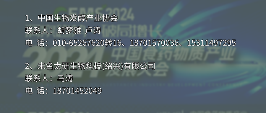 若要获取更多详细信息,请联系中国生物发酵产业协会或未名太研生物科技(绍兴)有限公司相关负责人。